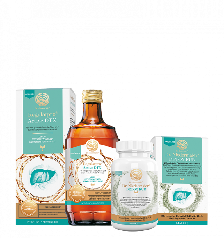 Das Zwei-Komponenten DETOX* Programm der Dr. Niedermaier Pharma basiert auf einem ganzheitlichen Konzept nach dem Prinzip „Lösen“ und „Binden“. Wir empfehlen daher Regulatpro® Active DTX immer in Kombination mit der Dr, Niedermaier® DETOX KUR einzunehmen.